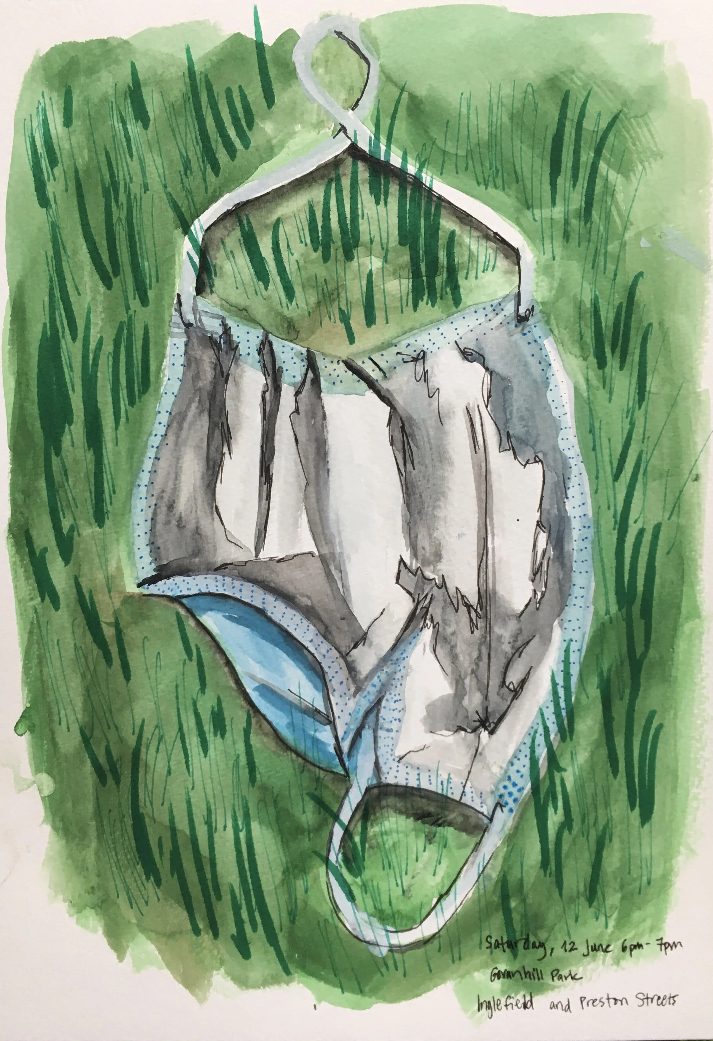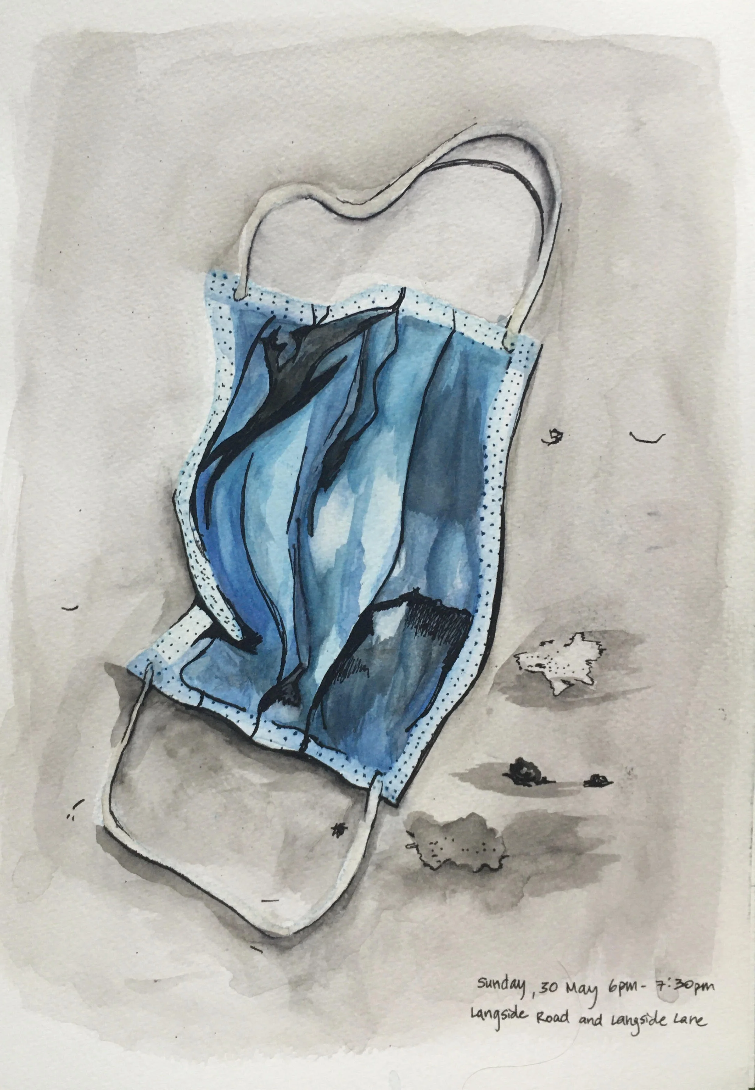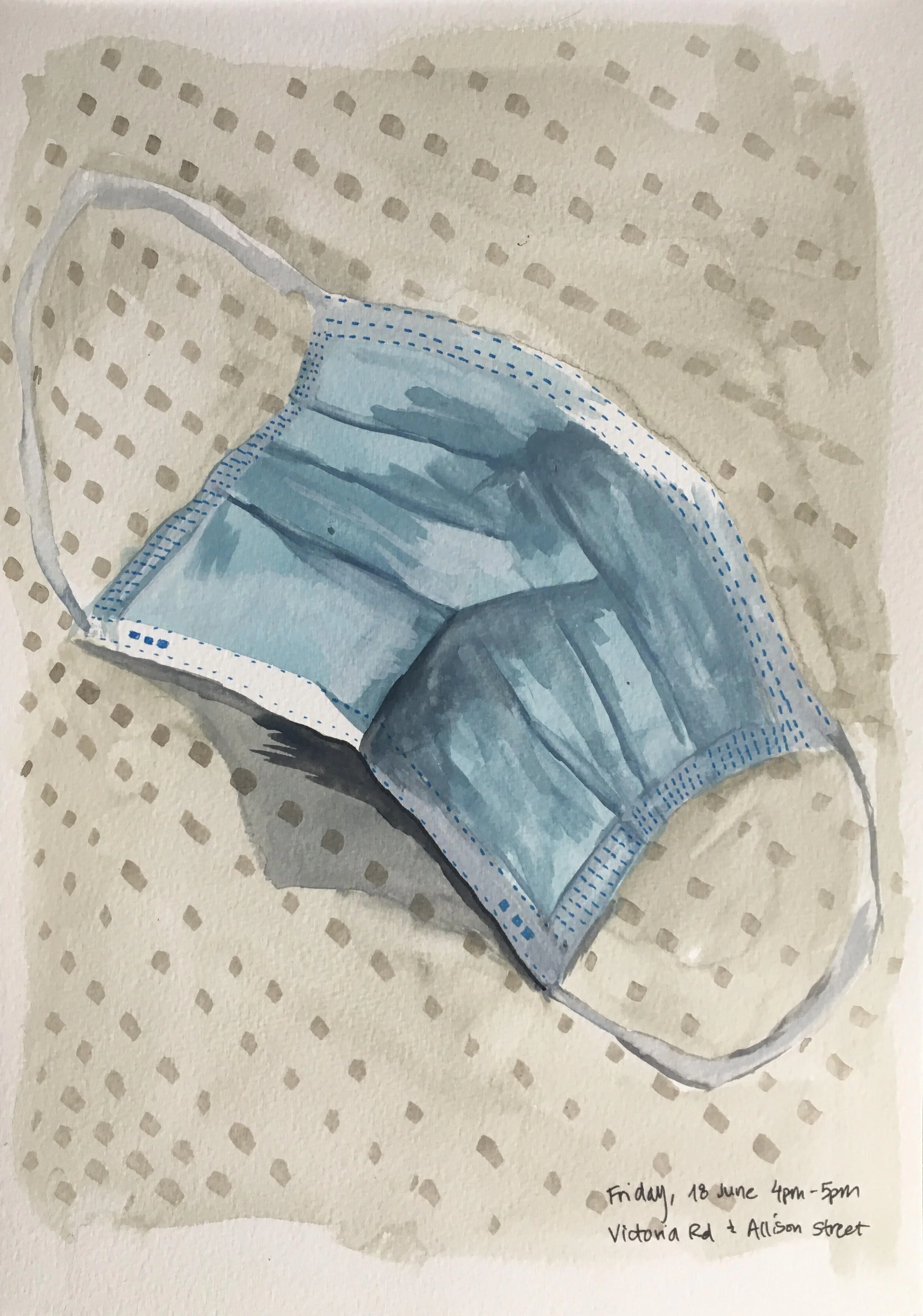 So after a while, having to wear masks, I started seeing them on the ground – really conspicuously these blue surgical masks – with such a direct relationship to what we're all going through right now. And they’re degrading into microplastics and hurting animals. And kids in the neighbourhood use the streets as their playground. So, when they're out there, they're walking over these masks that contain a virus that is killing the world. I don't even feel like I can pick them up because it's this filthy thing that's been on someone's face. But it was something that I needed to draw some attention to. I started doing paintings outdoors of used masks, and as soon as I would set up my easel people would start coming over. People who would never have spoken to me, or maybe don't speak much English, and I don't speak their language, would say ‘masca?’, for example, which is the Roma word for mask.